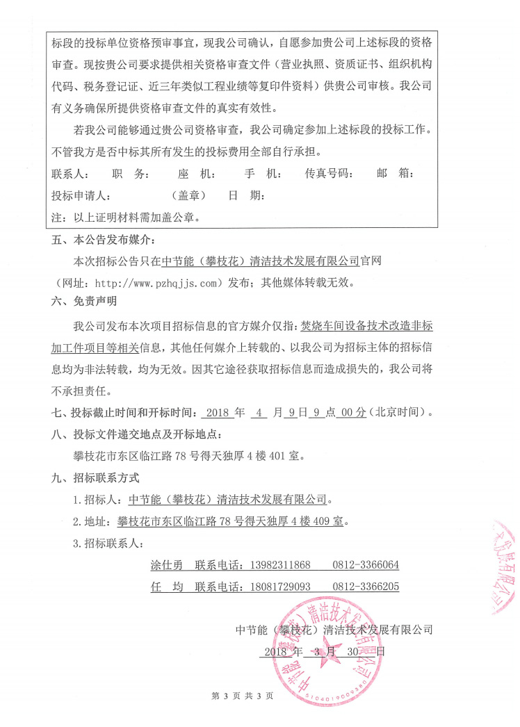 焚燒車間石墨預冷器工藝優(yōu)化技術改造項目招標公告