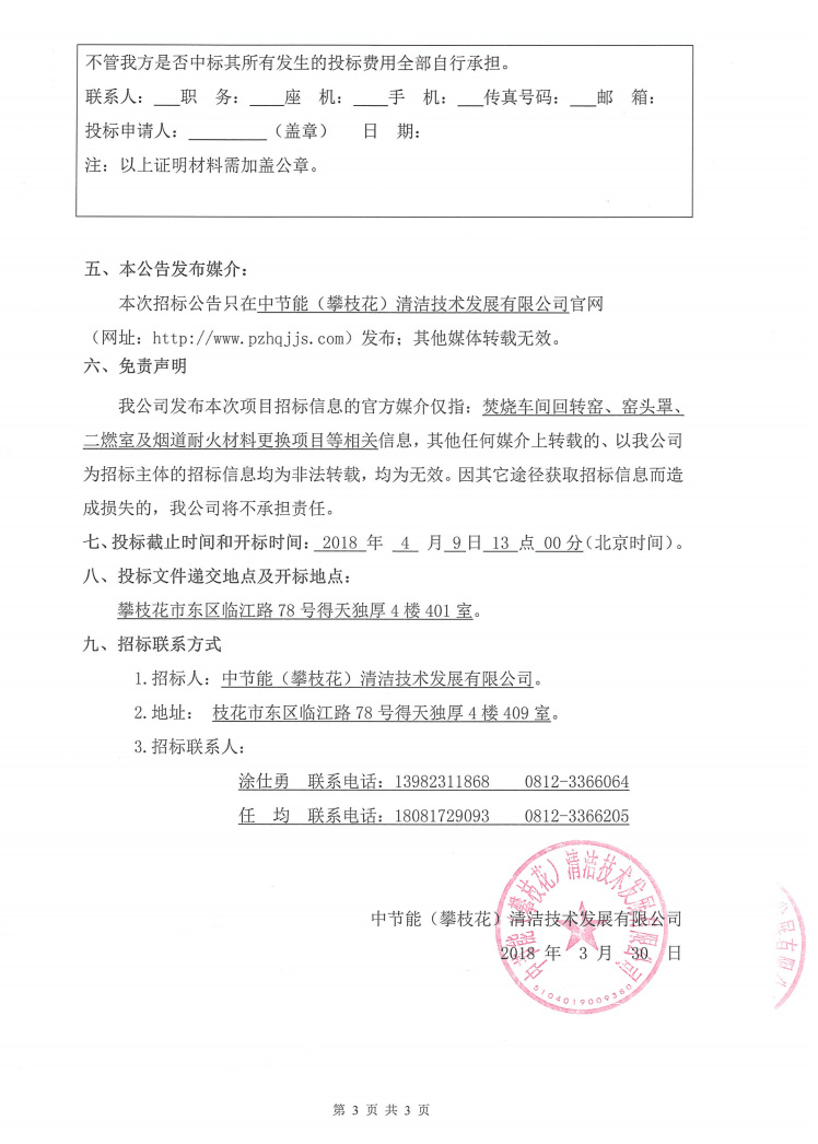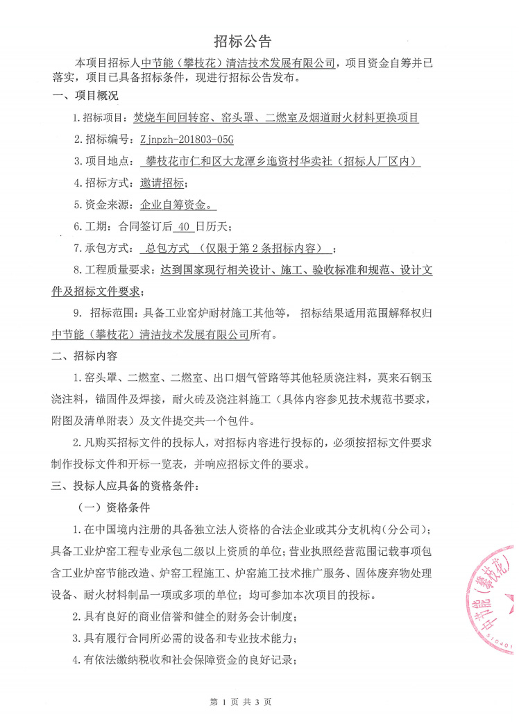 焚燒車間回轉(zhuǎn)窯、窯頭罩、二燃室及煙道耐火材料更換項(xiàng)目招標(biāo)公示