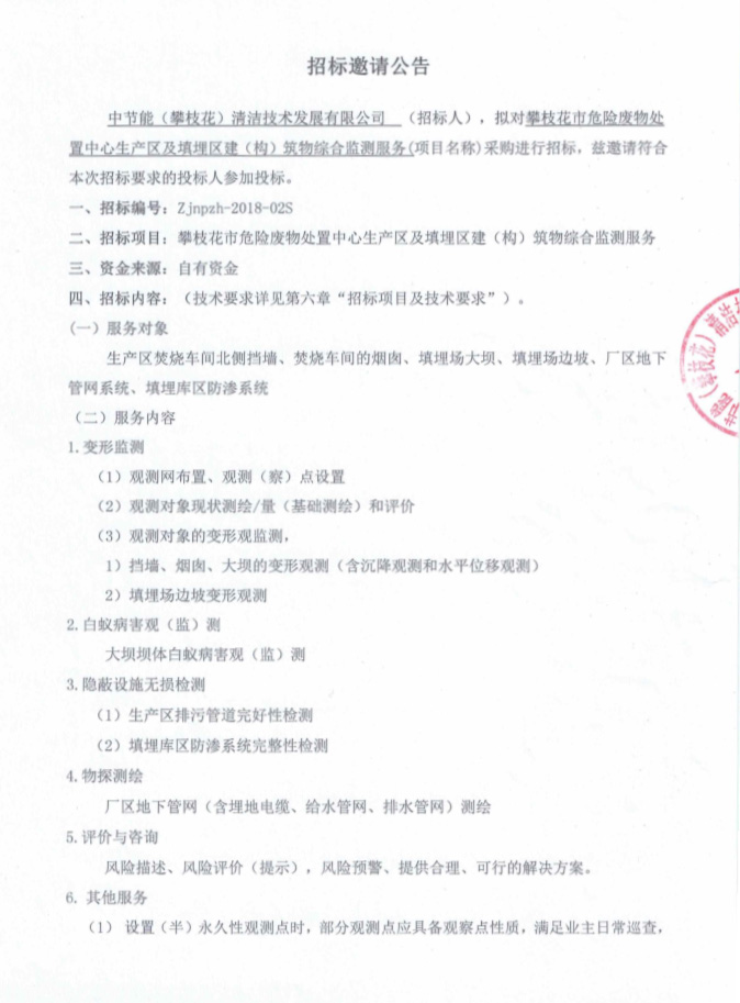 生產(chǎn)區(qū)及填埋區(qū)建(構(gòu))筑物綜合檢測(cè)服務(wù)采購(gòu)進(jìn)行招標(biāo)邀請(qǐng)公告