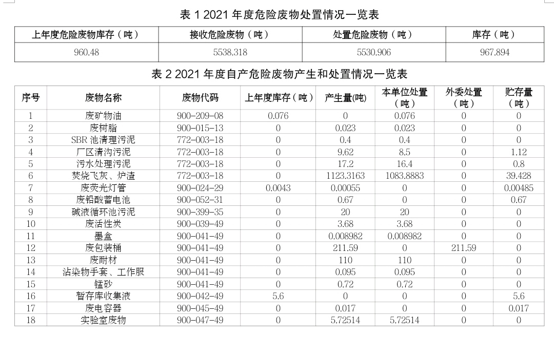 攀枝花市危險廢物處置中心項目是國務(wù)院批準的全國31個綜合危險廢物處置中心建設(shè)項目之一,建設(shè)于攀枝花市仁和區(qū)大龍?zhí)多l(xiāng)拉鲊村,占地面積134.22畝,總投資約2億元,由中節(jié)能(攀枝花)清潔技術(shù)發(fā)展有限公司(以下簡稱“公司”)投資建設(shè)和運營管理。核準處理原生廢物2.685萬噸/年(含醫(yī)療廢物處置2000噸/年),其中:焚燒處理5000噸/年,物化處理1000噸/年,穩(wěn)定化固化填埋20850噸/年;可對除多氯(溴)聯(lián)苯、新化學(xué)物質(zhì)外的43大類,448項危險廢物進行安全處置。現(xiàn)將我公司2021年收處危險廢物處置情況和自產(chǎn)危廢處置情況公示如下: