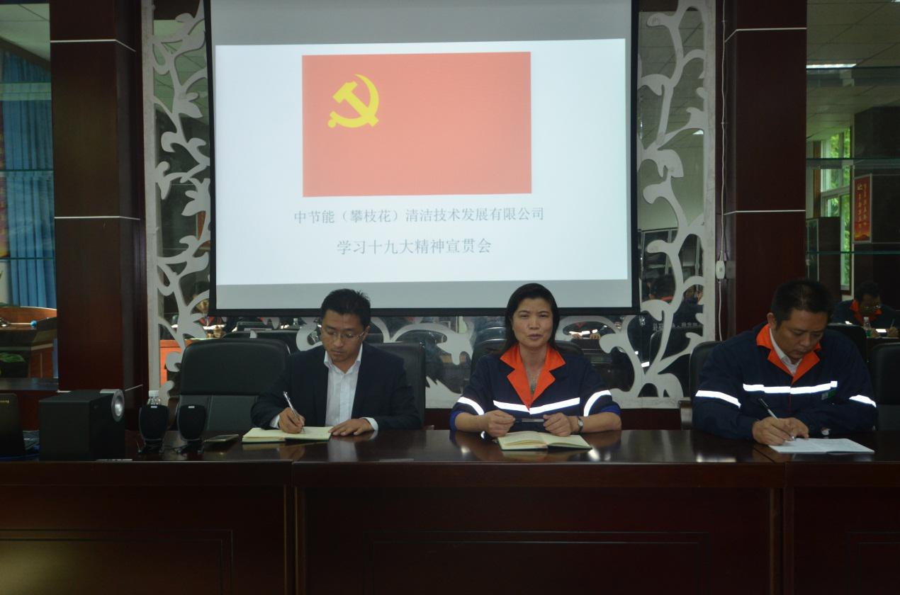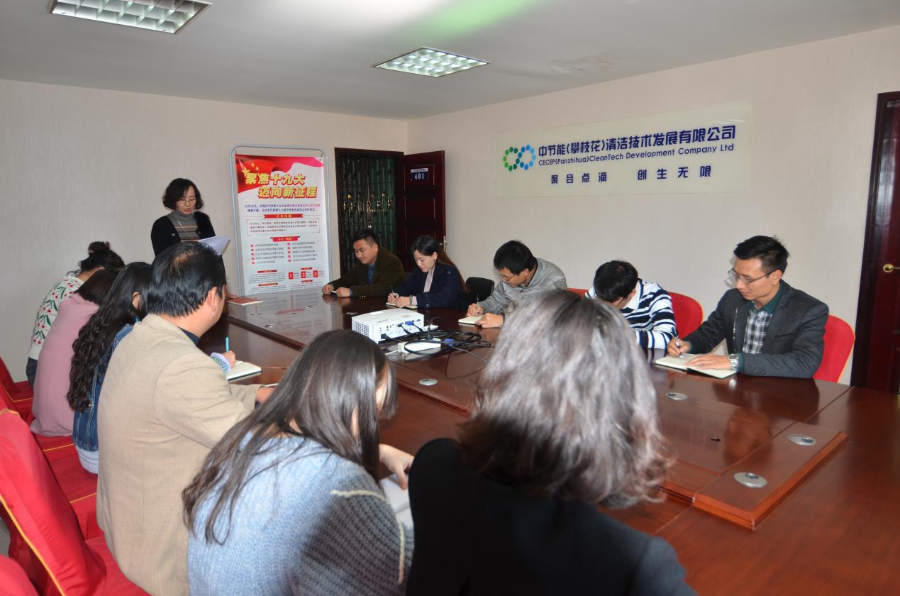 掀起學(xué)習(xí)十九大熱潮 推動(dòng)公司持續(xù)發(fā)展 -----中節(jié)能攀枝花公司深入學(xué)習(xí)十九大精神 2017年12月4日下午,中節(jié)能(攀枝花)清潔技術(shù)發(fā)展有限公司在廠區(qū)二樓會(huì)議室組織召開“深入學(xué)習(xí)宣傳貫徹黨的